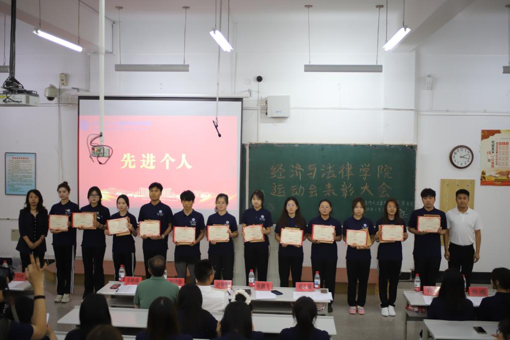 会议伊始,全体与会人员共同奏唱国歌。通过一段精心制作的视频,大家共同回顾经法运动健儿在第五十三届运动会中的卓越表现。随后,团委副书记张鹏飞宣读学院体育道德风尚奖、志愿服务突出贡献奖、先进个人及优秀运动员的获奖名单。团委学生副书记邱千纯、刘帅家为5个班级颁发体育道德风尚奖;学生会执行主席赵心豪、体育部负责人李佳澳为12名优秀志愿者颁发荣誉证书;学办主任齐艳萍、团委副书记张鹏飞为21名运动会工作人员授予先进个人奖;党委书记赵智博、党委副书记张国华为79名优秀运动员颁发荣誉证书。最后,获奖学生与老师合影留念,掌声雷动。